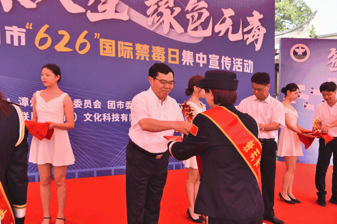 6月26日上午,市禁毒委員會、市委宣傳部、市公安局、團市委、市婦聯、薌城區禁毒委員會在“漳州古城”廣場隆重舉行健康人生,綠色無毒——2022年漳州市“6·26”國際禁毒日集中宣傳活動。