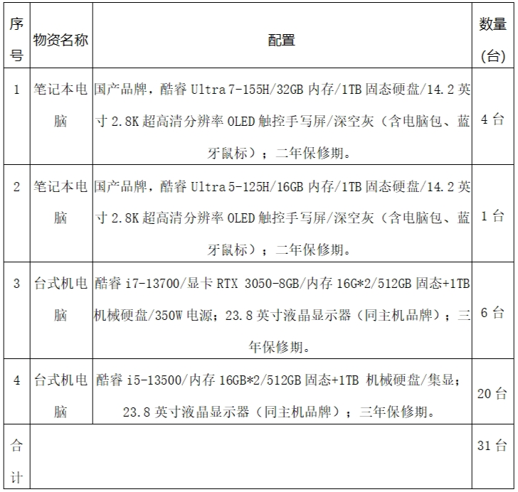 龍軸集團采購計算機設備招標公告
