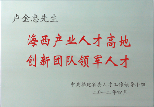 海西產業人才高地 創新團隊領軍人才(盧金忠) 福建省省人才工作領導小組