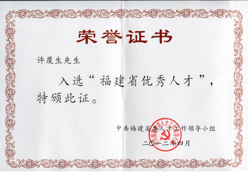 福建省優秀人才(許廈生) 福建省人才工作領導小組